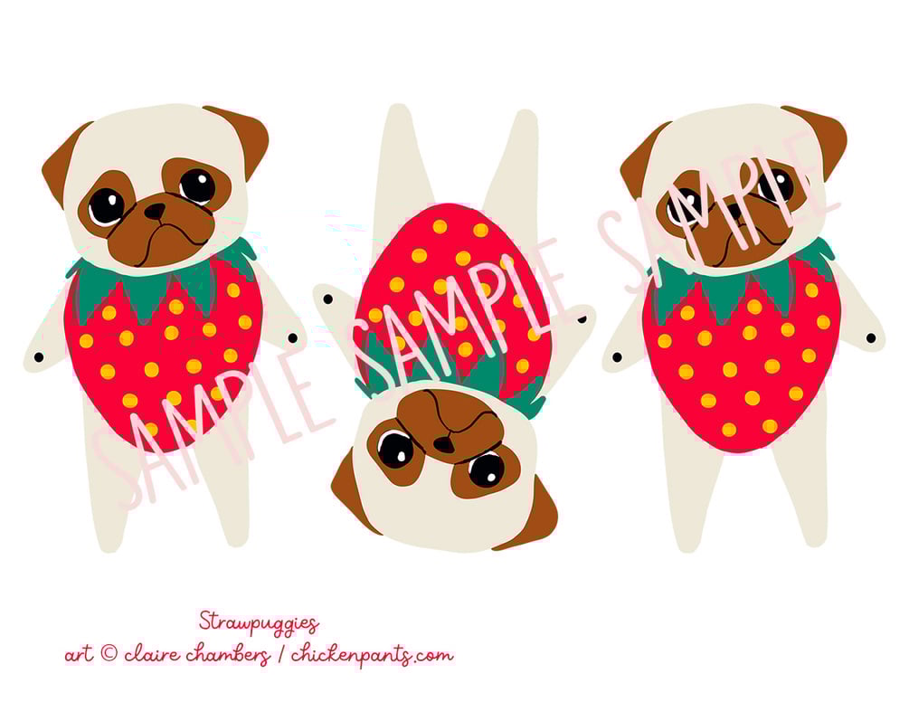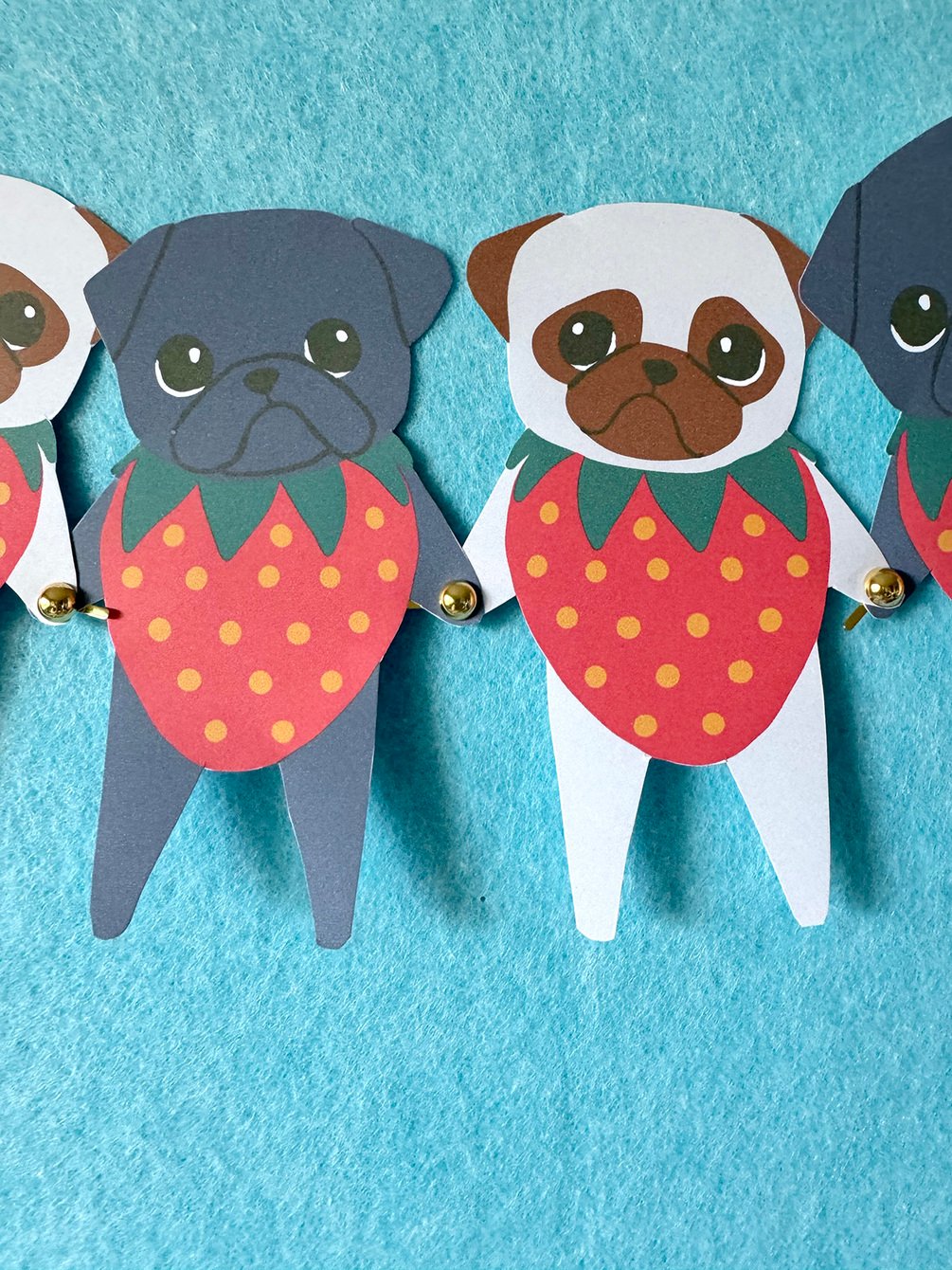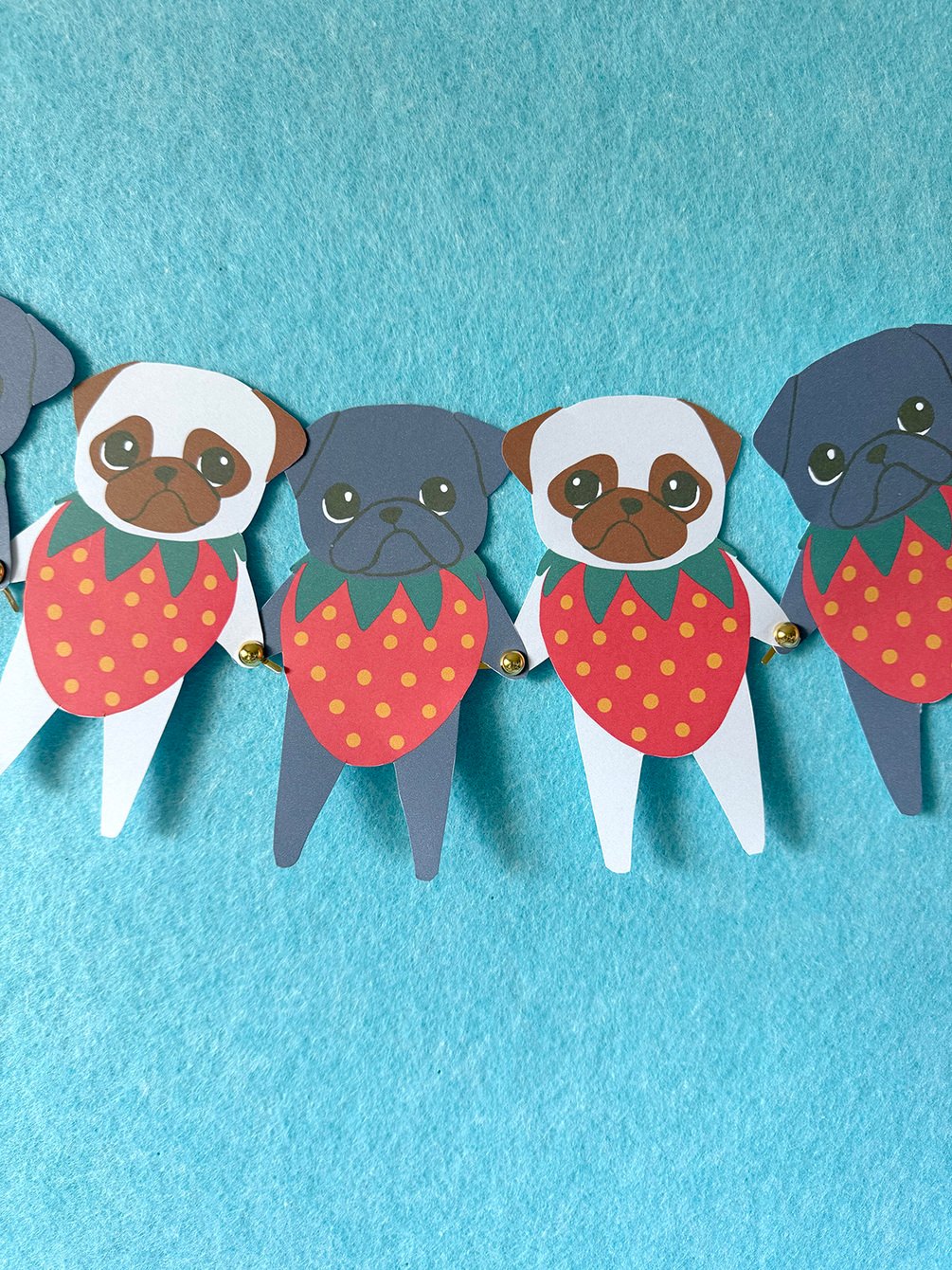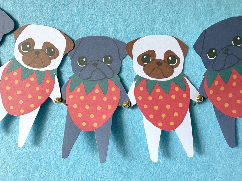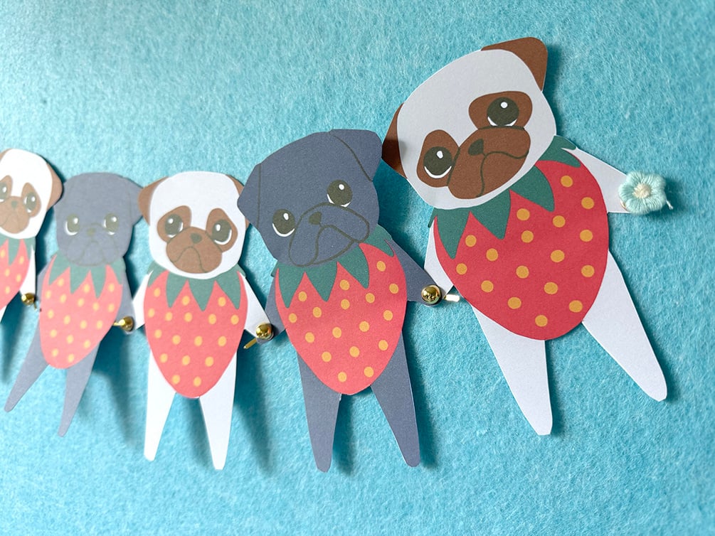Print out your very own Strawpuggies - perfect for last minute celebrations, or just bringing some fruity, puggy cheer to any space! Each pug measures approximately 3.5 inches from arm to arm.